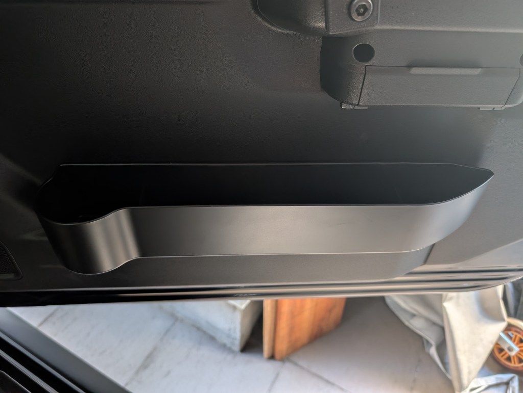 There are no installation instructions, but simply loosen the special screws slightly, slide the unit into the door console, and tighten the screws. It comes with double-sided tape, but it attaches securely even without it.