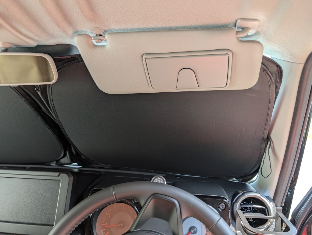 With this product, you simply unfold it, position it along the windshield, and secure it with the sun visor. Since it takes just two or three seconds, I’d say it passes the test.